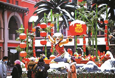 遍布園區的新春主題裝飾、全新推出的新春主題娛樂演出、充滿“年味”的限定美食……昨日,在紛紛揚揚的雪花中,北京環球度假區開啟了首個“環球中國年”季節性主題活動。即日起至2月20日,帶有春節特色的全新娛樂體驗將伴隨游客一起辭舊迎新,共同迎接虎年春節的到來。