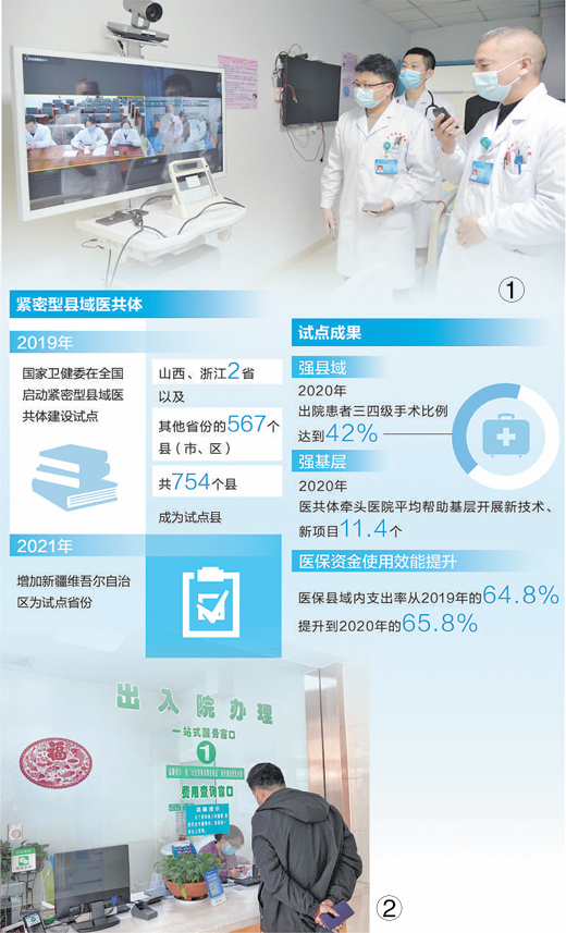 近日,國家衛健委印發《醫療機構設置規劃指導原則(2021—2025年)》,要求按照縣鄉一體化、鄉村一體化原則積極發展緊密型縣域醫共體。2019年,國家衛健委在全國啟動緊密型縣域醫共體建設試點。目前全國已有535個縣建成縣、鄉、村三級聯動的緊密型縣域醫共體,試點縣醫療服務效能提高,縣域內就診率超90%。