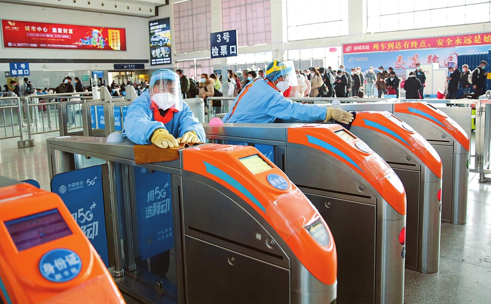 近期,面對學生流、節后探親返程流、務工流“三流”疊加,運城北站一手抓疫情防控,一手抓旅客組織,加強候車廳常態化疫情消殺制度,傾力確保旅客運輸平穩有序。(王文華攝)
