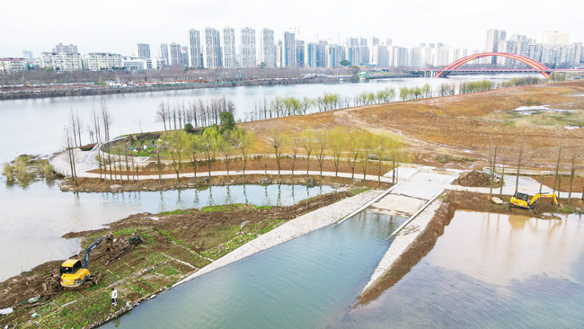 3月7日,金華市區五百灘公園西側區塊上,挖掘機正在清理沿江地帶。目前,五百灘公園景觀提升改造工程正在進行中。據了解,西側區塊將打造成花海,局部打造成濕地景觀,并對沿江樹木進行修整,修繕欄桿,優化親水平臺,設置景觀座椅,修建濱水棧道,拓展活動空間,為市民打造一個植被豐富、風景宜人的親水休憩游玩空間。(胡肖飛)