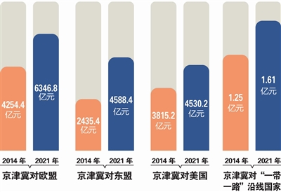水深則魚悅,城強則賈興。從2014年至今,京津冀地區進出口規模連創新高,2019年首次超過4萬億元,2021年更是達到4.44萬億元。在此基礎上,搶抓RCEP帶來的政策紅利,京津冀外貿出口規模有望再上新臺階。(記者 張兆瑞)