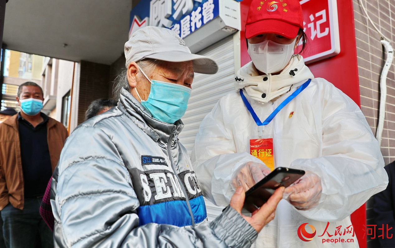 人民網(wǎng)石家莊3月27日電 “打開(kāi)電子健康碼。”“保持好1米距離。”……3月25日上午9點(diǎn),在河北秦皇島市海港區(qū)森林逸城小區(qū),秦皇島市委組織部黨員先鋒隊(duì)隊(duì)員董菁正在組織居民有序排隊(duì)做核酸檢測(cè),提醒大家準(zhǔn)備好電子健康碼,耐心指導(dǎo)不熟悉操作流程的居民。