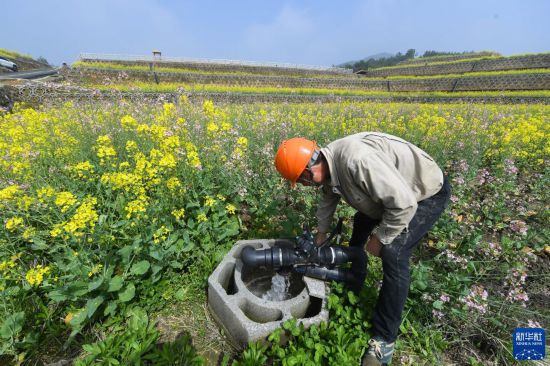 3月29日,在杭州市富陽區新登街道潘堰村的“海綿農田”內,工作人員查看農田下的地下隱形水庫水泵運行情況。