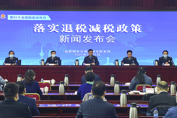 天津市稅務局黨委委員、副局長、市局退稅減稅辦主任付強通報了天津市稅務系統落實退稅減稅降費政策的總體部署,天津市稅務局黨委委員、總經濟師、新聞發言人張連祥主持發布會,并就組織開展稅收宣傳月系列活動進行介紹,相關業務處室圍繞更好落實新的組合式稅費支持政策、提升稅費服務質效作了具體說明。