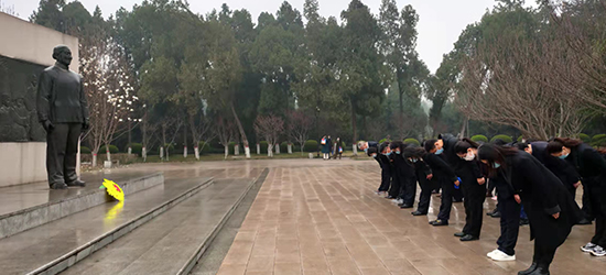 在戎冠秀紀念墻前肅立三鞠躬。 如月攝