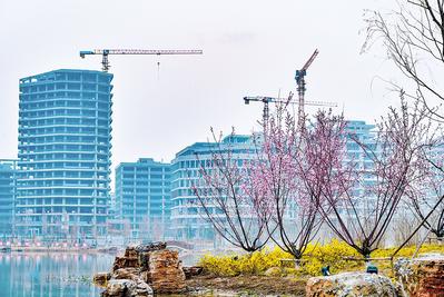 3月15日,位于雄安新區的金湖公園內,迎春和山桃競相開放,不遠處的“未來之城”正拔節生長。雄安新區這座承載千年大計、國家大事的“未來之城”正乘著春風,加快“顯雛形、出形象”,綻放光彩。河北日報記者 趙海江攝