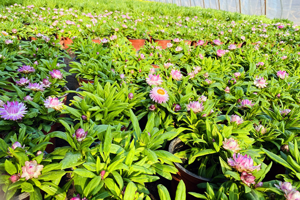 廊坊市廣陽區北旺鎮相士屯村盛園花卉種植基地正在盛開的麥稈菊。 王峻峰攝