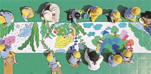 4月21日,臺(tái)州仙居縣幼兒園的孩子們?cè)诶蠋熤笇?dǎo)下創(chuàng)作珍愛地球主題繪畫作品。當(dāng)日,幼兒園開展以“珍愛地球 人與自然和諧共生”為主題的教育活動(dòng),迎接“世界地球日”到來。通過繪長卷、環(huán)保時(shí)裝秀、垃圾分類等教育活動(dòng),引導(dǎo)孩子們愛護(hù)環(huán)境,共同守護(hù)地球母親。
