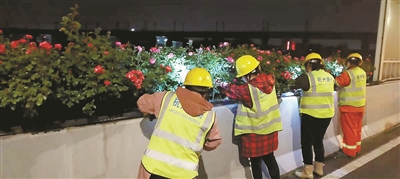 春季苗木生長迅速,水分需求量大,每天夜間22點到翌日凌晨2點,就是月季喝水的“黃金4小時”。為了確保月季“喝好水”,養護團隊根據天氣情況對供水時間進行加減微調,同時加大對滴管、滴劍等附屬設施檢修。