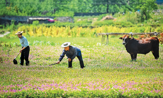 近日,麗水市青田縣禎埠鎮嶺下村村民正在收割紫云英。據了解,2021年,嶺下村黨支部利用農田閑置期,投資20余萬元種植了130畝的紫云英。紫云英花海不僅成為嶺下村一道亮麗的風景線,更是一種極佳的有機肥料,花期過后,紫云英草籽作為天然肥料還將滋沃這片土壤,實現觀賞和肥田“一箭雙雕”。(雷寧、張永益)