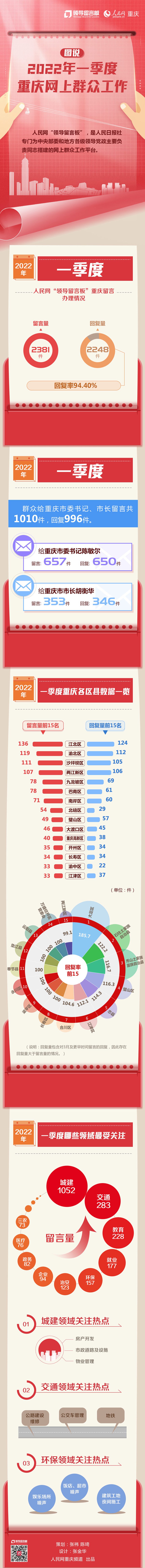 人民網重慶4月20日電 (陳琦)近日,人民網“領導留言板”2022年一季度重慶版塊留言辦理情況數據出爐。一季度,群眾通過“領導留言板”給重慶市各級領導干部的留言量2381件,其中有2248件留言得到回復,留言回復率為94.4%。