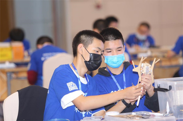 未來太空車復賽由現場制作和障礙物攀爬兩部分組成,參賽隊伍需在規定時間內完成太空車制作并通過尺寸核驗,最后通過三輪障礙物攀爬比賽決出勝負。比賽中,參賽隊伍以問題為導向,在充分考慮“太空車”爬行動力支撐、速度、阻力、摩擦力等制約因素下,進行裝置的拼裝及改裝,隨著“太空車”一個接一個地翻越過障礙物,現場同學們紛紛送上喝彩。