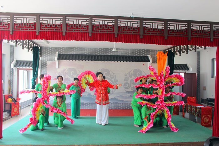 青縣盤古鎮大盤古村愛心小屋的文化志愿者正在為群眾表演文藝節目。 王笑譜攝