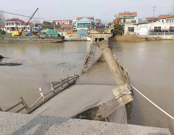 橫跨九圩港河的英雄大橋是劉橋鎮(zhèn)群眾出行的重要通道。2021年1月5日,大橋遭貨船撞擊后垮塌,給九圩港河兩岸村民出行帶來不便。此后,當地群眾過河不得不繞行,近的繞行四五公里,遠的十來公里。“孩子們每天上學放學都要繞行,遇到惡劣天氣尤為不便。”蔣一村村民陸漢林說,大家都盼著重建大橋。