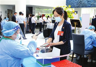 因新冠疫情防控需要,此次黨代會實行全程閉環管理。“請您先測一下體溫。”工作人員熱情地引導著。代表們佩戴口罩,保持間距,有序完成測溫、驗碼、安檢、流調、核酸檢測,隨后全身心投入到參會各項準備工作。