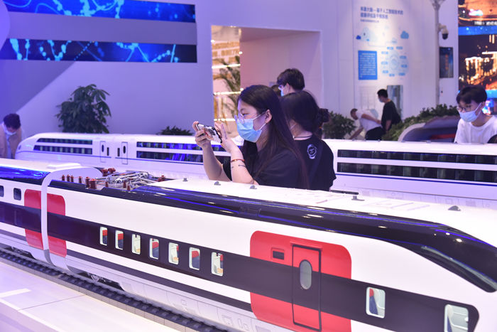 在河北省科技成果展示交易中心, 參觀者駐足拍照(資料圖)。河北省科技成果展示交易中心供圖
