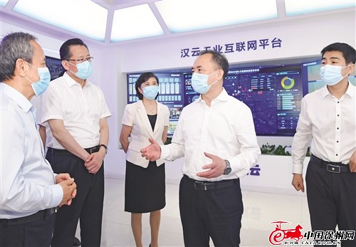 市委書記宋樂偉在徐工漢云技術股份有限公司,詳細了解關鍵技術、產品應用、工業互聯網平臺打造等情況。 本報記者 孫井賢 攝