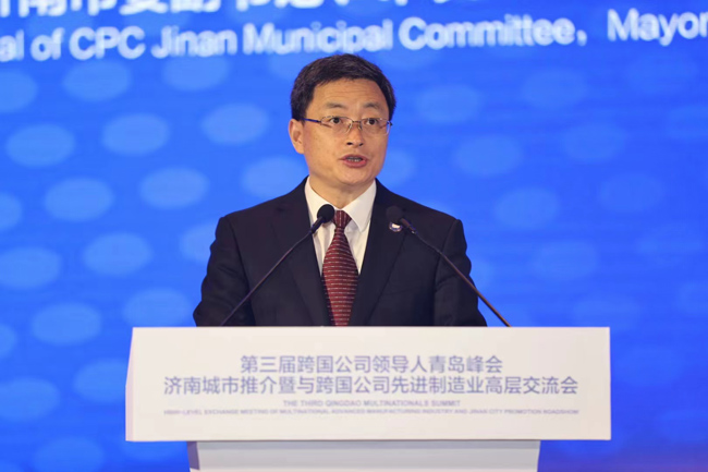 人民網青島6月20日電 6月20日上午,第三屆跨國公司領導人青島峰會舉辦期間,濟南市舉辦城市推介暨與跨國公司先進制造業高層交流會。近100家世界500強、跨國公司、知名企業、商協會機構及駐濟重點企業的150余名嘉賓齊聚一堂,共商合作,共謀發展。山東省委常委、市委書記劉強出席,市委副書記、市長于海田出席并致辭。