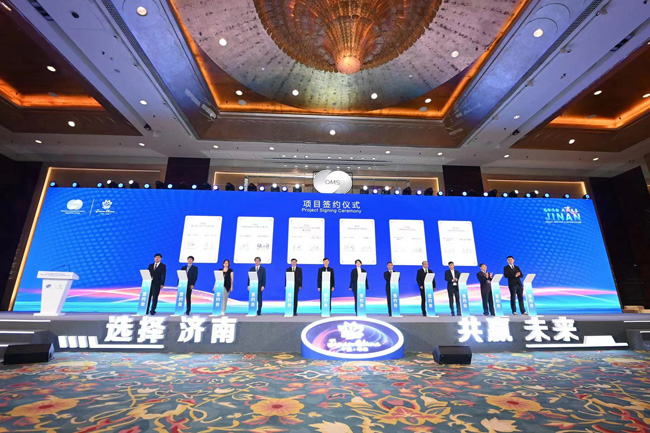 本次峰會期間,濟南市共有19個項目簽約。其中,在省主會場共簽約7個項目,項目總投資額約9.71億美元,合同外資2.78億美元,涉及新材料、新能源、新一代信息技術等領域。在濟南城市推介活動現場,共簽約12個項目,總投資額約8.54億美元,合同外資3.85億美元,涉及高端裝備制造、現代農業、新能源、類金融等領域,其中制造業類項目7個。