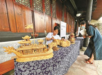 寧波主會場“運河市集”展示龍舟雕刻技藝。唐嚴攝