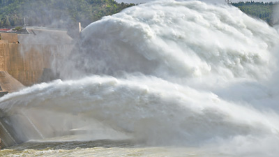 圖為29日,黃河小浪底水庫(kù)出水口。據(jù)介紹,2022年汛前黃河調(diào)水調(diào)沙于19日啟動(dòng),預(yù)計(jì)歷時(shí)20天左右。