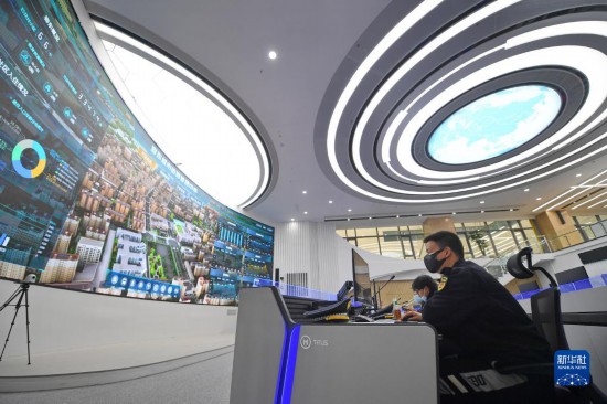 工作人員在雄安新區容東城市運營管理中心監管平臺工作(2022年3月29日攝)。新華社記者 朱旭東 攝