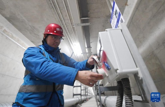 工作人員在雄安新區容東片區地下管廊調試物聯網設備(2022年3月30日攝)。新華社記者 朱旭東 攝