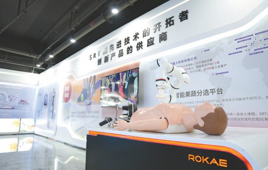 中關村機器人產業創新中心展廳內的彩超機器人。本報記者 崔家寧攝