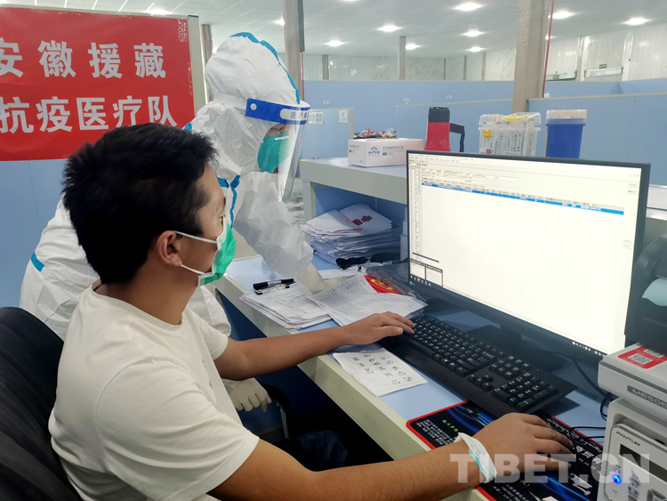 他發揮自身特長,利用在醫院工作的經驗,一遍又一遍、不厭其煩地向衛生保潔人員宣傳清潔標準及醫廢處理要求。面對出院患者用過的物品、床鋪消殺處理,以及一日3次的衛生間、垃圾桶、醫廢處理等公共區域衛生清潔、消殺的繁重任務,他永遠走在最前面。同時他還承擔起援藏醫護人員與其他患者溝通的“翻譯官”,并主動請纓為醫護人員分擔信息技術服務、系統維護和數據統計等工作,協助醫務人員進行日常管理。