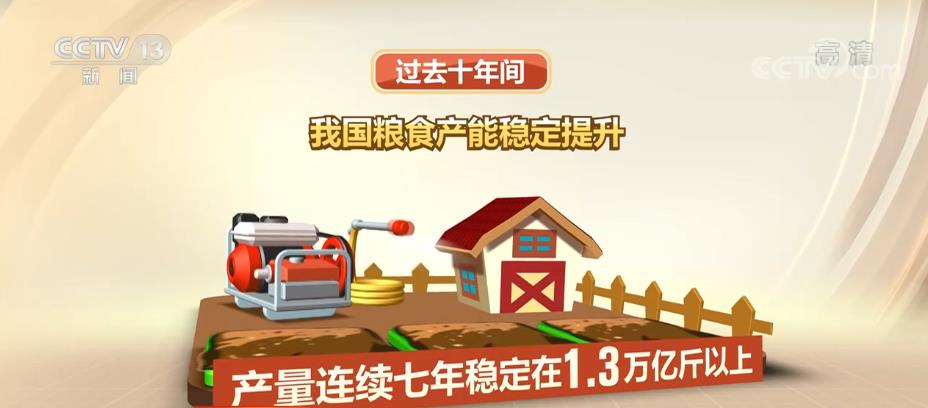 過去十年間,我國糧食產能穩定提升,產量連續七年穩定在1.3萬億斤以上,十年再上一個千億斤新臺階。人均糧食產量達到483.5公斤,高于國際公認的400公斤糧食安全線,做到了谷物基本自給、口糧絕對安全。
