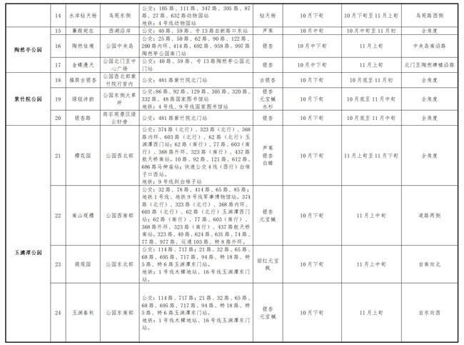 玉淵潭公園的櫻花園不僅能在春天賞櫻花,到了秋天,小湖畔大片蘆葦與水中秋葉的倒影相得益彰,還有睡蓮、菖蒲、荇菜等品種豐富的水生植物,可謂“樹樹皆秋色,山山唯落輝”。香山公園的紅葉已進(jìn)入觀賞期,漸次變色的樹葉呈現(xiàn)出多種色彩,與園林古建筑、革命紀(jì)念地舊址相互映襯,獨(dú)具魅力。