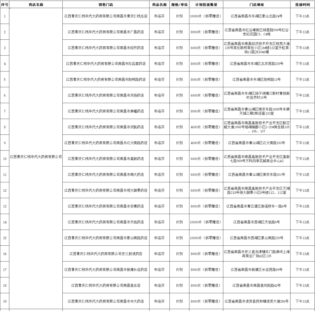 據悉,本期投放共計拆零贈送20.6萬片(粒),銷售1200盒。消費者可根據自身需求,前往就近的門店購買或領取。本次公布藥品信息將于12月22日投放,請關注具體投放時間(見詳下表)。