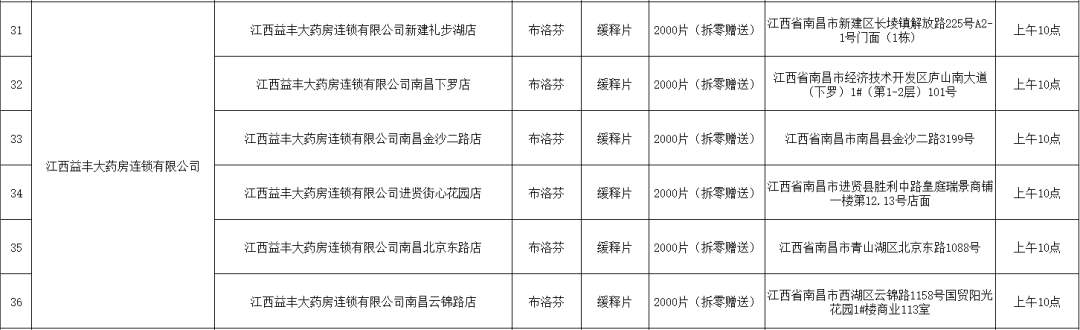 21日,南昌市市場監督管理局公布退熱藥品投放名單(第二批),本批次名單共公布7家藥品零售企業共56家藥店的退熱藥品投放信息,分別是:江西黃慶仁棧華氏大藥房有限公司、江西大參林連鎖藥店有限公司、江西南華大藥房有限公司、江西匯仁堂藥品連鎖股份有限公司、江西昌盛大藥房有限公司、江西益豐大藥房連鎖有限公司、江西康每樂大藥房連鎖有限公司。