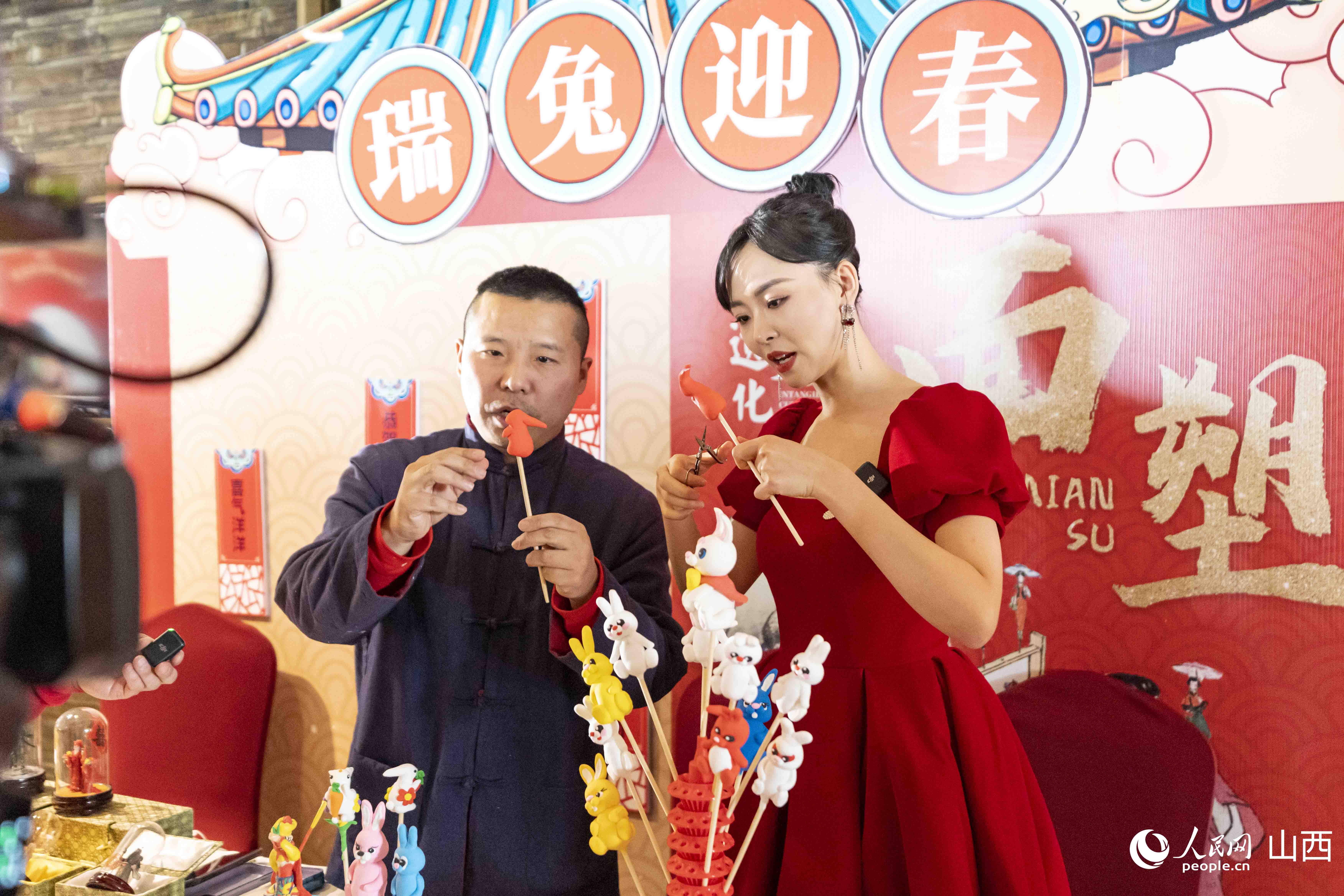 在推介活動現場,精心布置了“新春市集”互動體驗區、年俗非遺互動體驗區、年俗節目快閃區等頗具山西特色文化的體驗區域,營造了喜慶、熱烈的春節氛圍。剪紙、木板年畫、糖畫、面塑等項目,讓現場嘉賓沉浸式體驗山西非遺的獨特魅力。在山西年俗表演快閃區域,舞獅表演、旱船等山西社火表演,讓濃濃的年味迎面撲來。活動中,飽含山西大院文化符號、中國結等元素,寓意團圓美滿的山西文旅兔年IP形象“晉小美”也首次亮相。
