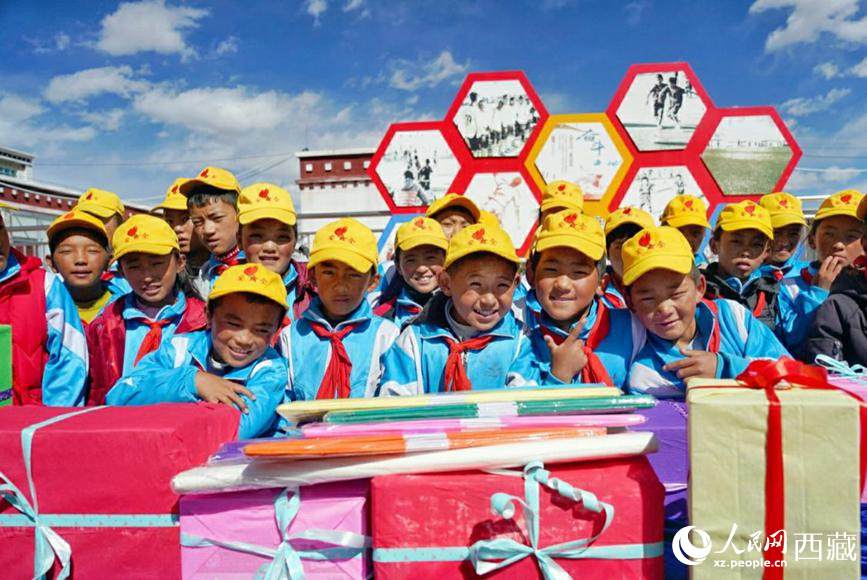 拉薩市當雄縣小學的孩子們收到愛心人士送來的禮物。人民網 李海霞攝