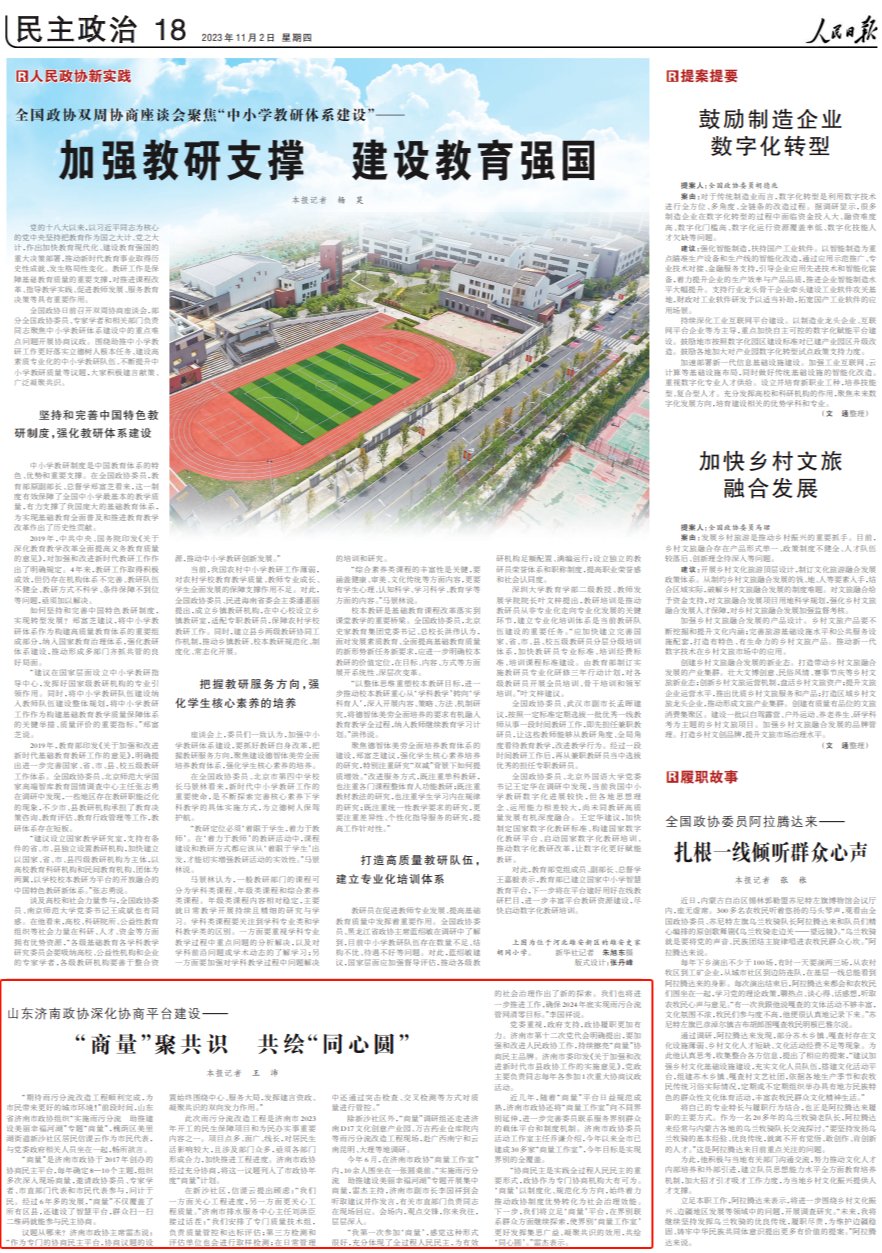 人民日報點贊濟南政協深化協商平臺建設:“商量”聚共識 共繪“同心圓”