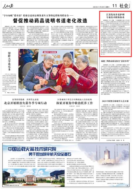 人民日報|江蘇發(fā)布養(yǎng)老護理專業(yè)技術(shù)職稱體系