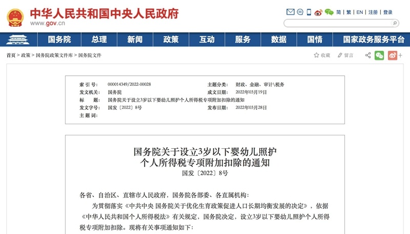 央廣網北京3月28日消息(記者劉柏煊)又有一項生育政策配套措施落地!今天(28日)下午,國務院印發通知,決定設立3歲以下嬰幼兒照護個人所得稅專項附加扣除,按照每個嬰幼兒每月1000元的標準定額扣除。新政回溯至今年1月1日起實施。