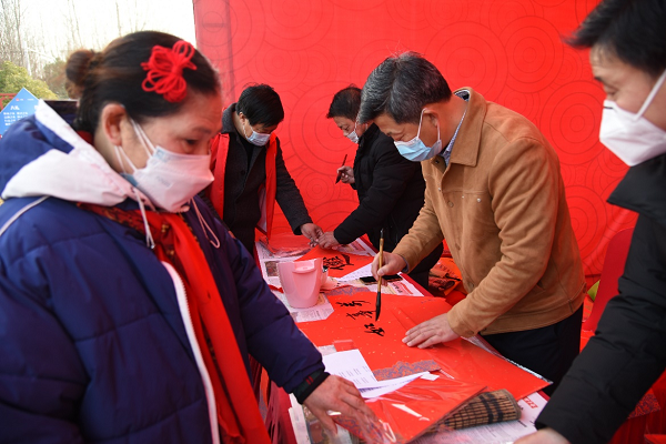 臺上歡歌載舞,臺下人頭攢動。配鑰匙、法律援助咨詢、醫生義診、眼鏡修理等服務,吸引了不少村民。書法家們現場書寫幾百幅福字,將新年的美好祝愿贈予村民。