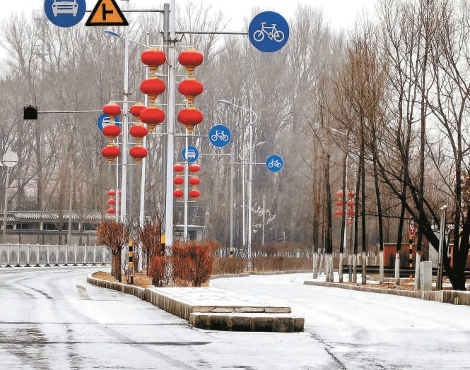 昨天午后,延慶區(qū)雪花紛紛揚(yáng)揚(yáng),大街鋪上了薄薄一層白雪。本報(bào)記者 吳鏑攝