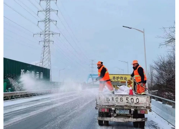 14日下午降雪后,公路部門以雪為令,第一時間啟動除雪保暢應急預案,全市公路系統25支360余人的應急隊伍全部出動,連夜在全市近千公里普通國省干線公路開展除雪融冰作業,在結冰路段、橋梁、彎道等重點路段撒布融雪劑、防滑料,全力以赴確保公路安全暢通。