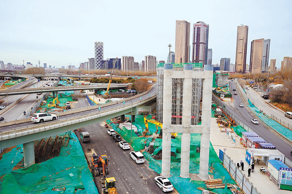 京密快速路4標(biāo)段所在的五元橋施工現(xiàn)場(chǎng),工人們忙著綁扎鋼筋、澆筑混凝土、焊接鋼筋籠。目前,該項(xiàng)目正處于橋梁樁基建設(shè)、現(xiàn)澆箱梁、排架搭設(shè)等施工階段。 本報(bào)記者 程功攝