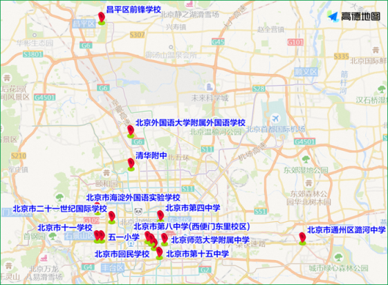 早間,中關(guān)村、廣渠門、什剎海、豐臺(tái)西南四環(huán)等學(xué)校較為集中的地區(qū)交通壓力突出。清華附中、北京四中、皇城根小學(xué)、十一學(xué)校、海淀外國(guó)語實(shí)驗(yàn)學(xué)校、師范大學(xué)第二附屬中學(xué)海淀學(xué)校、第十二中學(xué)科豐校區(qū)等校園周邊車流集中,校園門前道路容易出現(xiàn)行駛緩慢的情況。各中學(xué)周邊道路車流高峰將出現(xiàn)在7:00至7:30;小學(xué)周邊車流高峰普遍出現(xiàn)在7:30至8:00。