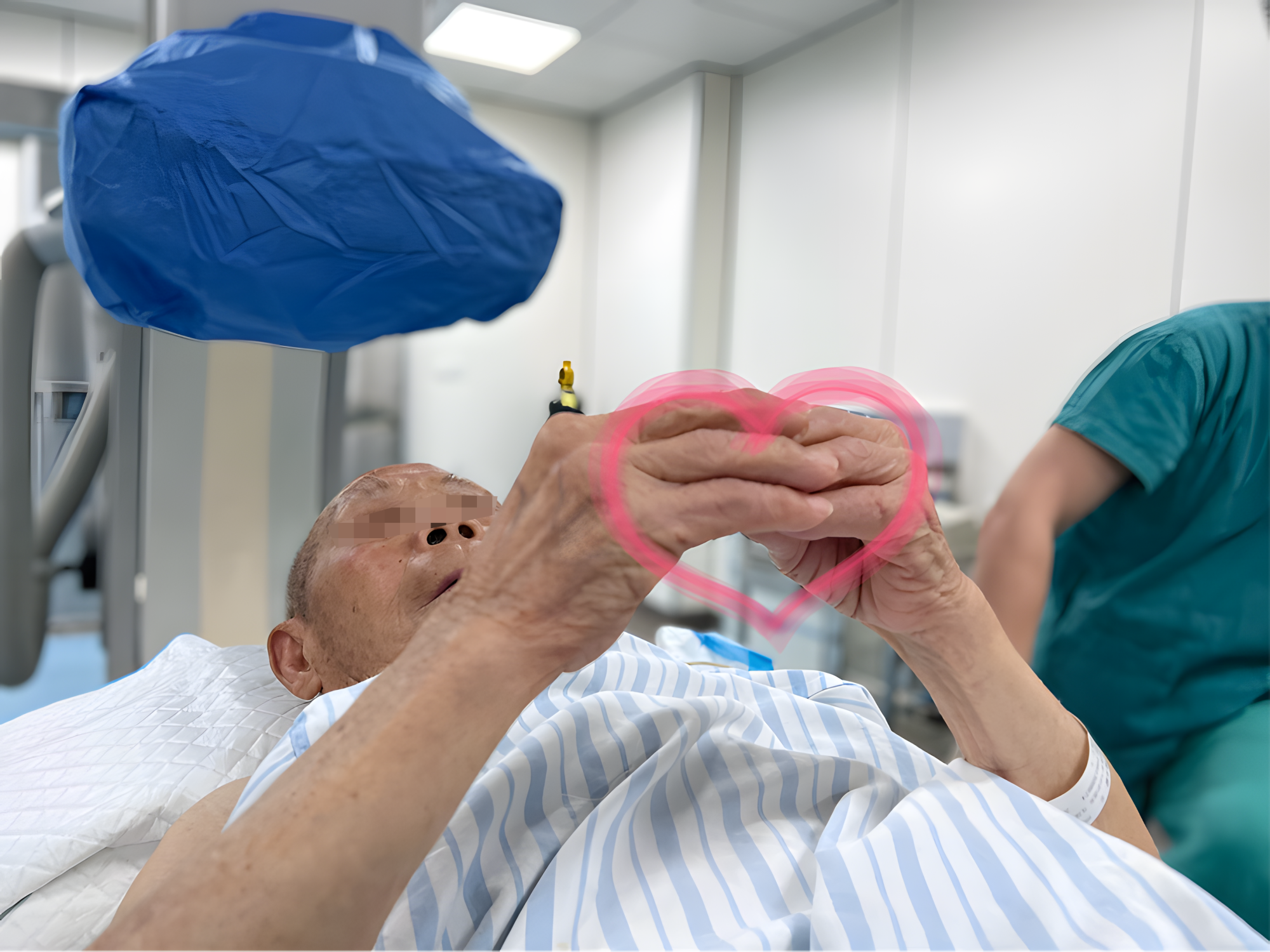 完成高難度手術(shù)拆除“不定時炸彈” 102歲老人比心致謝
