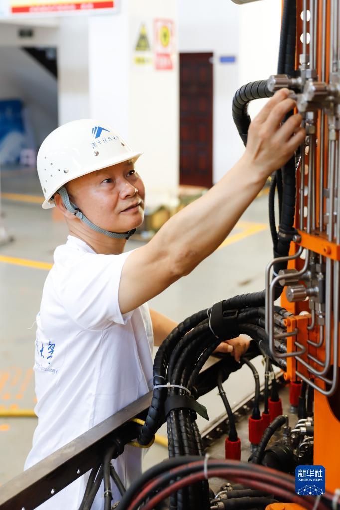 萬步炎在湖南科技大學海洋實驗室工作(2022年7月25日攝)。新華社發