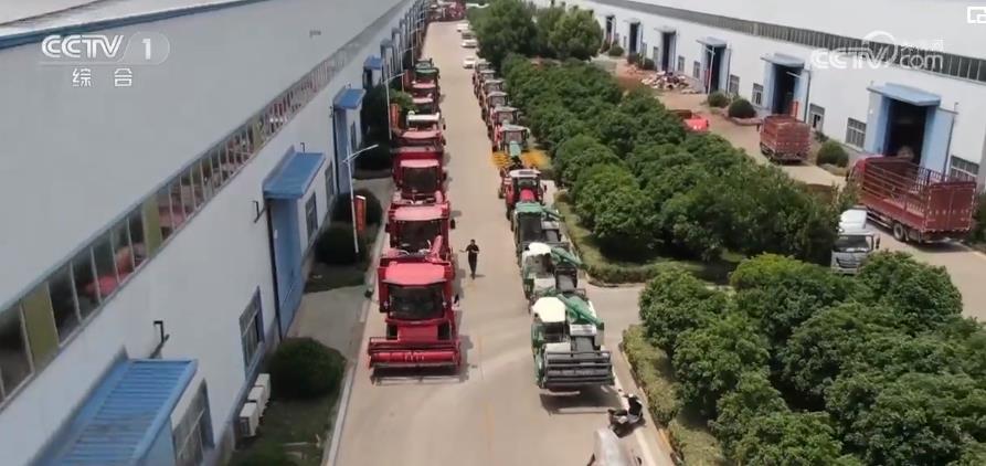總臺央視記者 陳博:這里是河南省駐馬店市最大的一家農機專業合作社,再有5天左右的時間,駐馬店就將迎來小麥大規模機收作業。現在在這里我們可以看到這一系列的小麥聯合收割機、摟草機、打捆機都已經完成了麥收前的維修和保養的準備工作。在這里我們觀察到一個新的現象,就是像這樣大馬力、大喂入量的農機,它的數量有了一個明顯的提升,它們投入到生產中就會大幅提升麥收的作業效率。與此同時,在我左手邊這些履帶式收割機,它們的數量也有了增加,在后期如果遇到連陰雨天氣的話,地面會濕滑泥濘,普通農機下不了田,它們就會發揮一個很大的作用,為后續的應急作業提供一個有力的保障。