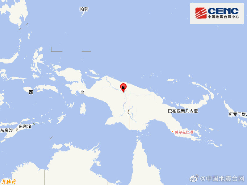 中國地震臺網正式測定:07月03日10時51分在印尼巴布亞?。暇?.90度,東經140.25度)發生5.3級地震,震源深度20千米。