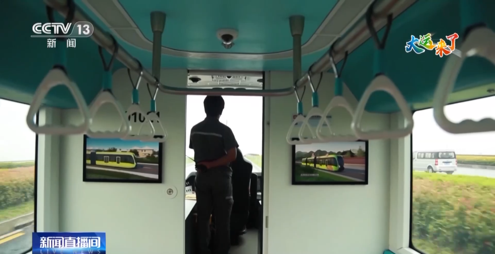 總臺記者 白璐:智軌和公交車相比,不僅速度更快,更加平穩,同時運力也大大提升。像這樣一個3個車廂編組的智軌,最大的載客量就達到300人,是普通公交車的3倍。