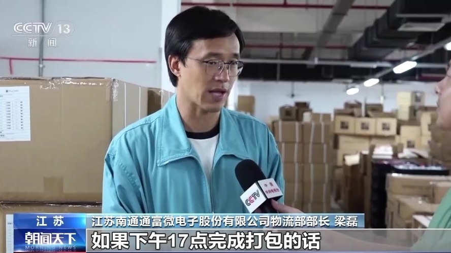 江蘇南通通富微電子股份有限公司物流部部長 梁磊:我們當天的出貨,如果17點完成打包的話,當天晚上12點前,基本就能到達深圳。客戶的一些特急件,我們甚至凌晨就能派送到位。