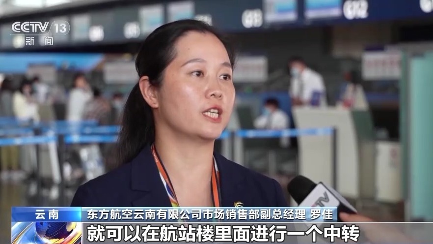 東方航空云南有限公司市場銷售部副總經理 羅佳:旅客不需要出隔離區,就可以在航站樓里面進行中轉,并且行李直掛,行李從始發站開始不用二次提取。